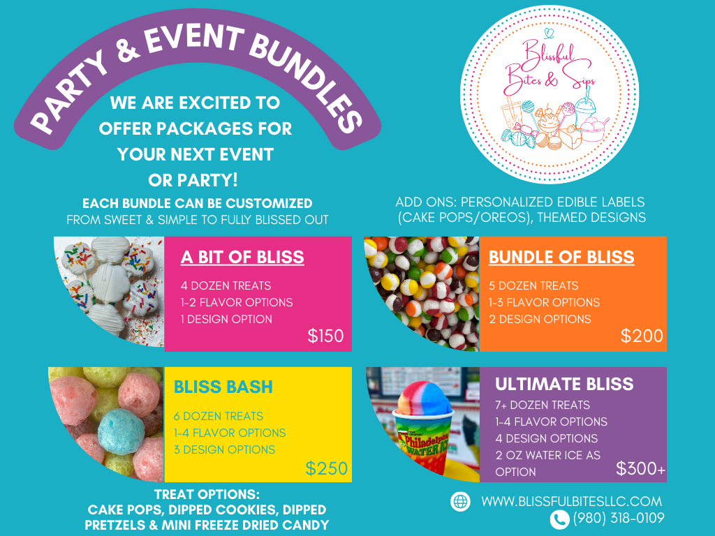 NEED TREATS FOR YOUR NEXT PARTY OR EVENT? IF YES, CHECK OUT OUR BLISSFUL BUNDLES!